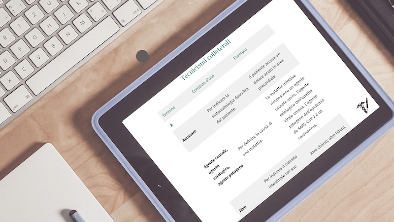 Vediamo di capire esattamente di cosa si tratta, facendo un piccolo passo indietro e definendo anzitutto i tecnicismi specifici. Questi sono né più né meno i termini medici che troviamo in anatomia (ulna, massetere), fisiologia (metabolismo, midriasi), patologia (glaucoma, setticemia)… Denotano in modo inequivocabile realtà specifiche e, se molti possono apparire, appunto, “tecnici”, è il caso di ricordare che moltissimi appartengono anche al lessico comune (fegato, occhio, milza…).